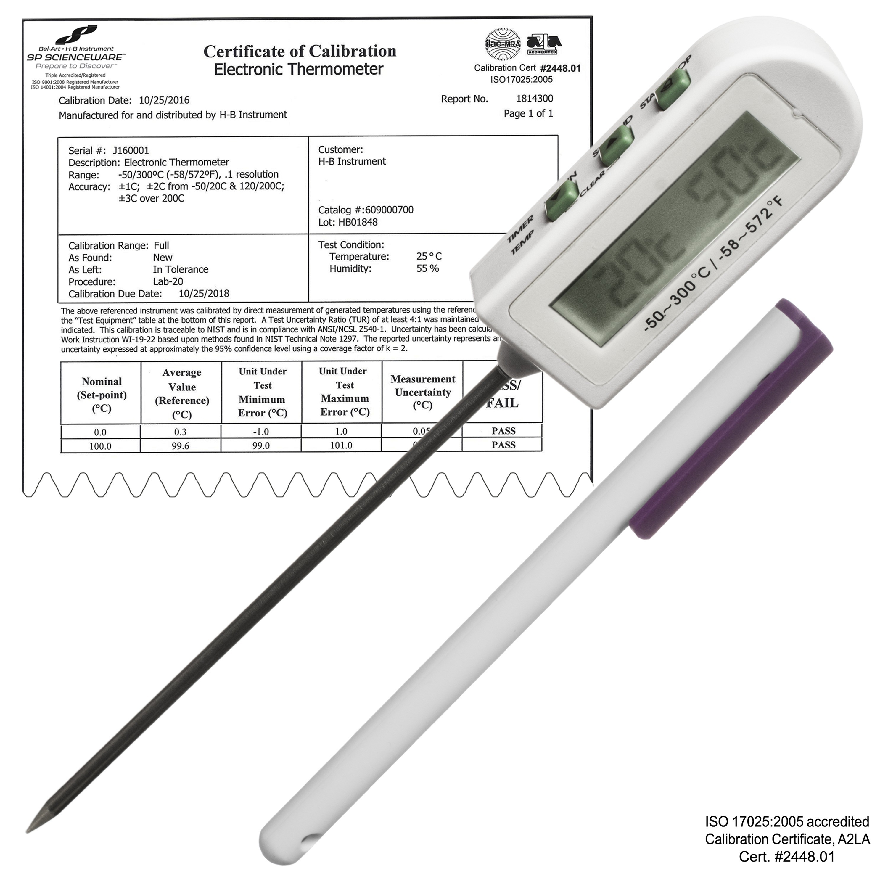 SP Bel-Art, H-B DURAC Calibrated Electronic Stainless Steel Stem Thermometer, -50/300C (-58/572F), 127mm (5 in.) Probe